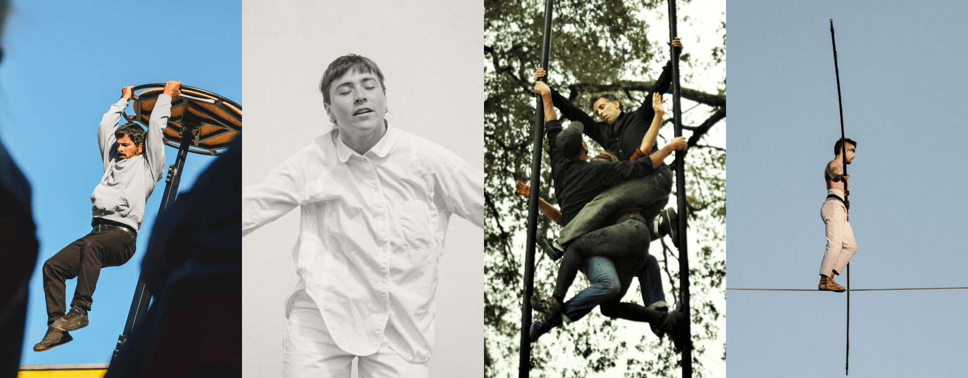 Dans ce décor où des mâts chinois trônent, les artistes poussent toujours plus loin les limites du risque physique et l’expression de leurs émotions. Le collectif Entre Nous explore la richesse infinie et complexe des relations humaines et établit une fresque de nos interactions avec les autres. Dans un cirque – théâtre, la tragédie prend des airs comiques pour nous amener avec bienveillance à explorer la possibilité d’être authentique, collectivement et intimement.
